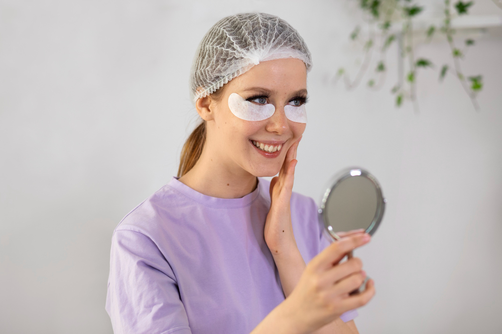 - Между патчем и кожей не должно быть пузырьков воздуха и складок. Это может снизить эффективность процедуры и даже оставить следы на нежной коже век.